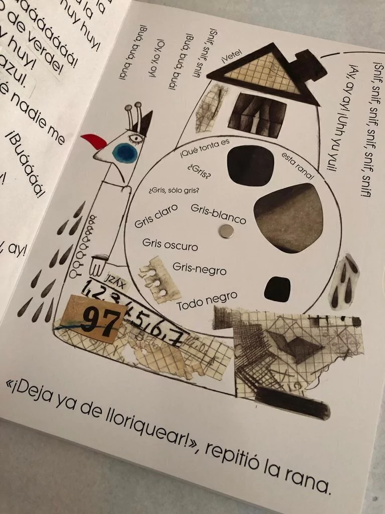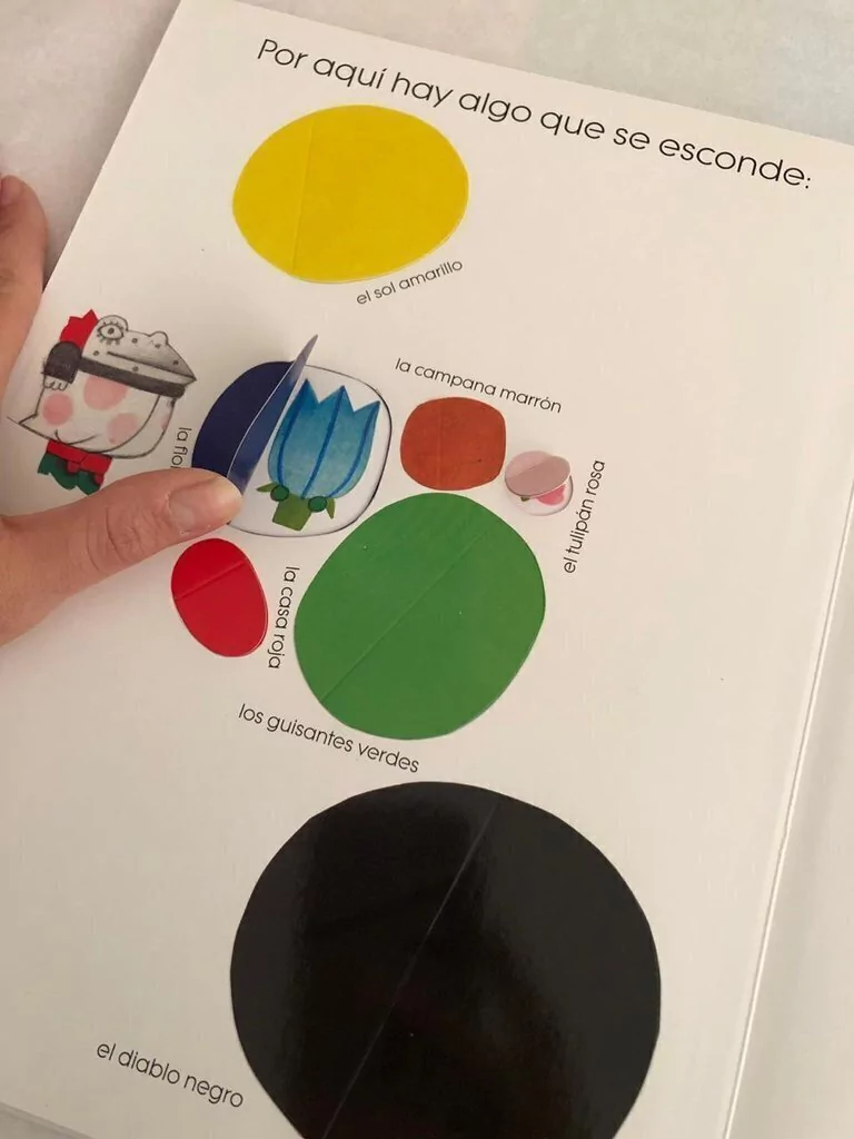 También tiene increíbles círculos que giran, invitando al lector a crear distintas combinaciones cromáticas: ahora rojo, luego verde, quizá amarillo es más bonito….