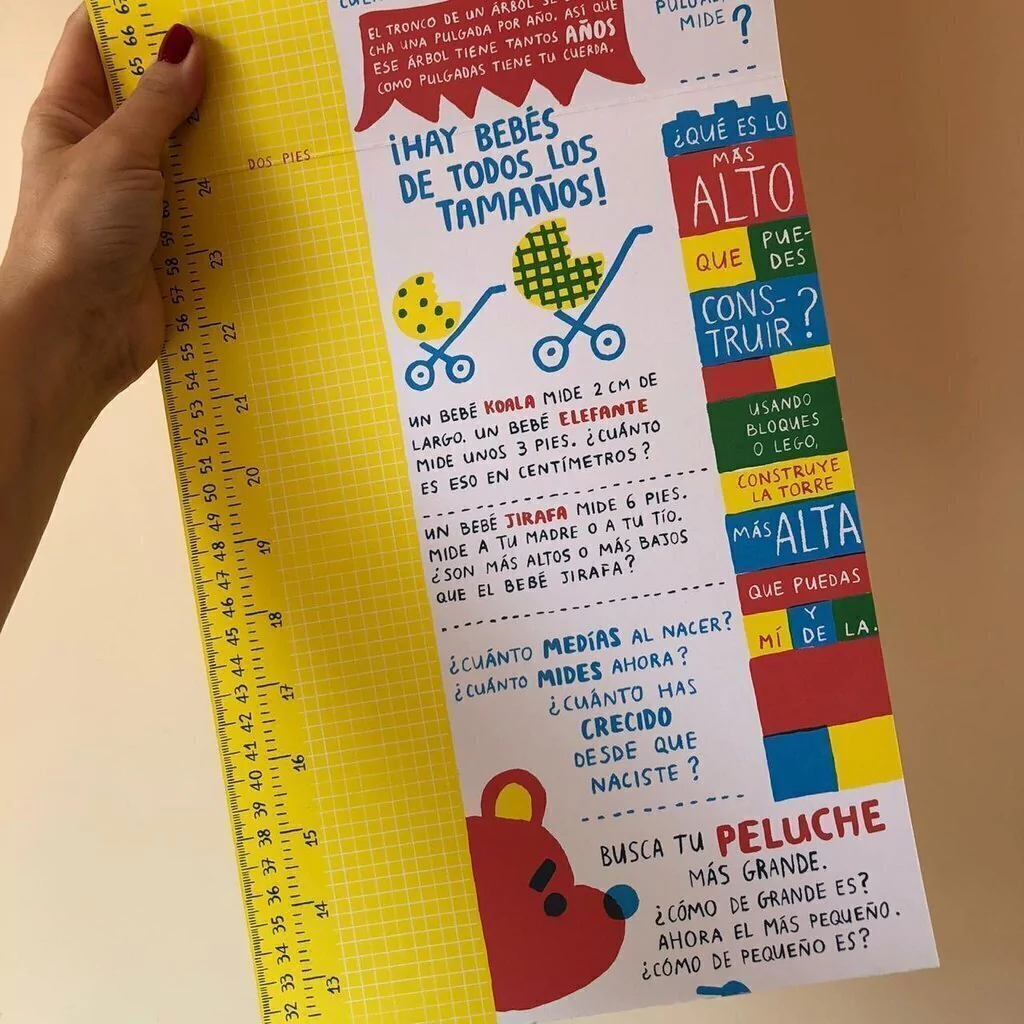 Puedes colgar este libro en la pared y usarlo para medir cuánto creces, o puedes darle la vuelta y pasártelo genial con distintos retos...
