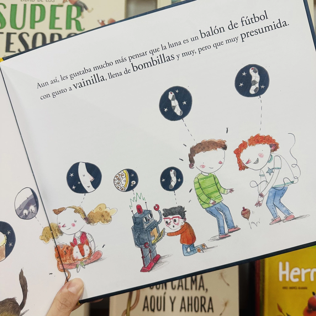 Una noche, Pablo vio que la luna brillaba grande y redonda en el cielo. Al día siguiente, se dio cuenta de que era un poco más pequeña, y más pequeña aún cada día… hasta que desapareció por completo. ¡Qué misterio!