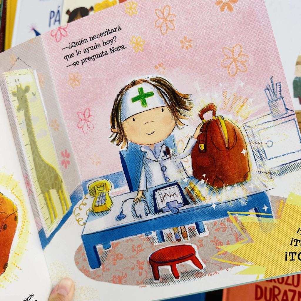 A Nora le encanta disfrazarse y hoy ha decidido convertirse en ¡la doctora Nora! Con su botiquín mágico conseguirá curar a todos sus pacientes: el resfriado de Oso Polar, el golpetazo de Cocodrilo y la garganta irritada de Pelícano. Pero ¿quién solucionará el rugido de sus tripas? ¡También la doctora Nora les preparará un estupendo pícnic!