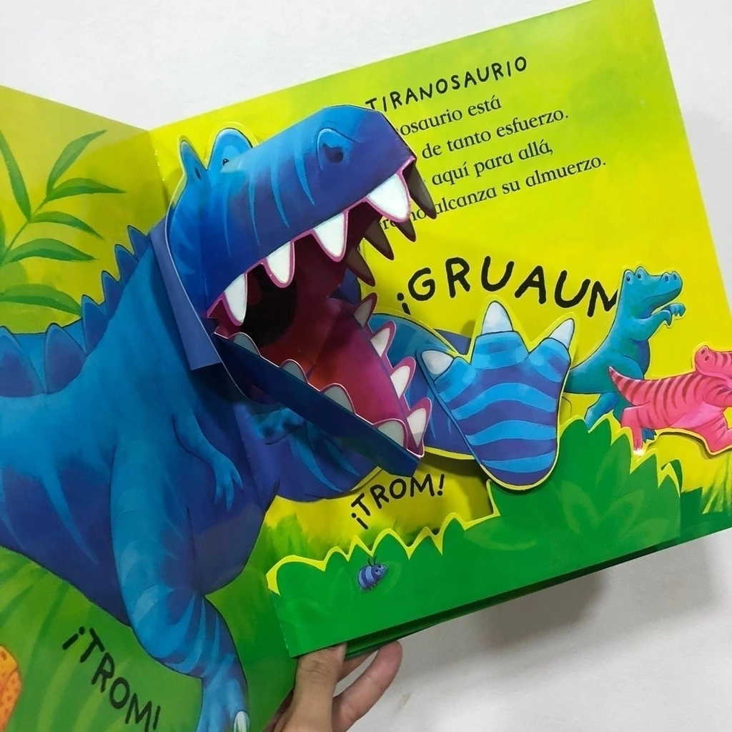 Una manada de dinosaurios se han reunido para hacer de las suyas en estas páginas desplegables que tanto gustan a los más pequeños. El diplodocus, el tiranosaurio, el pteranodonte o el ictiosaurio son animales de grandes dimensiones pero no son muy feroces y a los niños y niñas les encantará reír con sus aventuras.