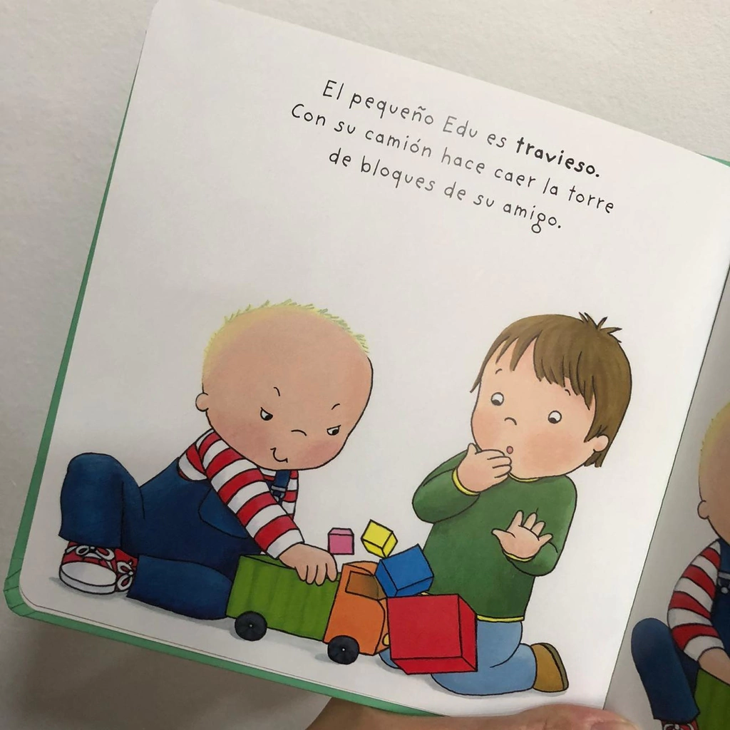 El pequeño Edu no está enfadado. íEstá contento!Edu es travieso y hace caer la torre de bloques de su amigo. Pero después los recoge y juntos construyen una nueva torre. Edu ha sido amable. Un libro tierno sobre la expresión de las emociones, para niños y niñas a partir de los 18 meses.