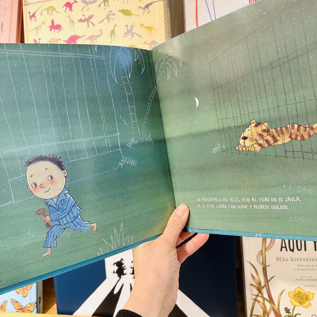 Un niño se despierta en mitad de la noche, notando en la nuca el aliento de un tigre. ¡Ha vuelto a ocurrir! Asustado, salta de la cama. Finalmente decide llevarlo al zoo antes de que se despierte. Lo arrastra por la ciudad, lo lleva al zoo, que está abierto, y sin que se despierte ningún otro animal, lo encierra en una jaula.