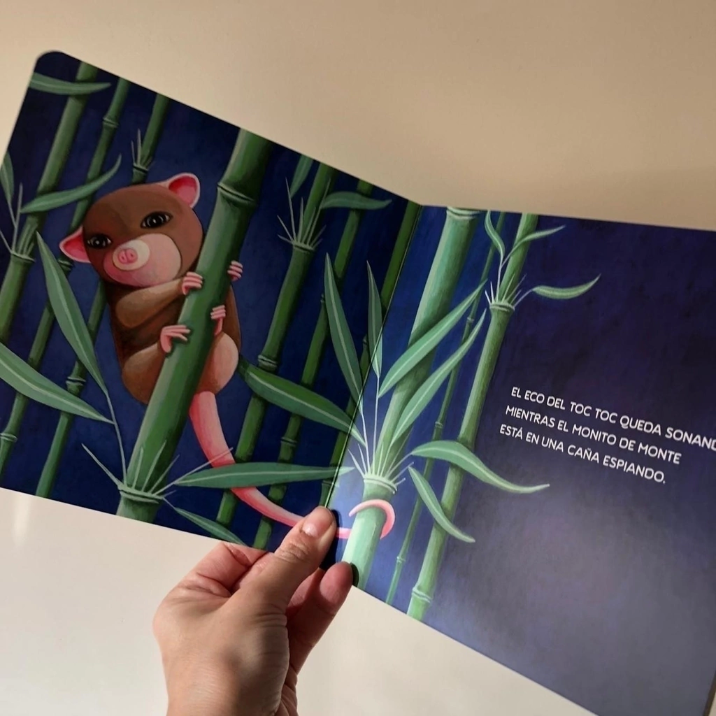 “El eco del toc toc queda sonando, mientras el monito de monte está en una caña espiando”.