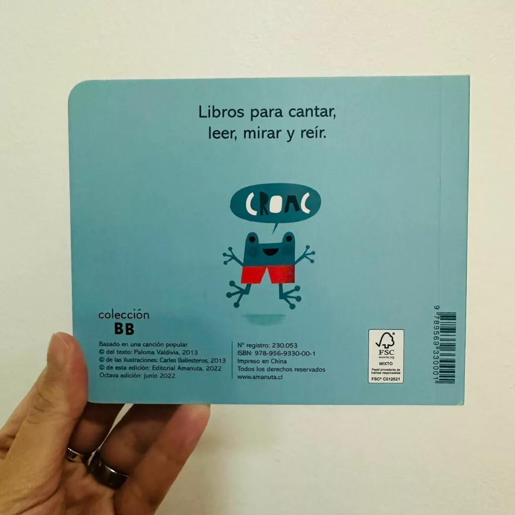 Variación de la canción popular Estaba la rana debajo del agua. Con este libro, los niños podrán relacionarse con una canción que los hará entonar, repetir y memorizar, permitiéndoles desarrollar una experiencia de lectura desde sus primeros meses de vida. Es una invitación a madres, padres, familiares y educadores a crear un vínculo afectivo con el bebé, a través de este libro.