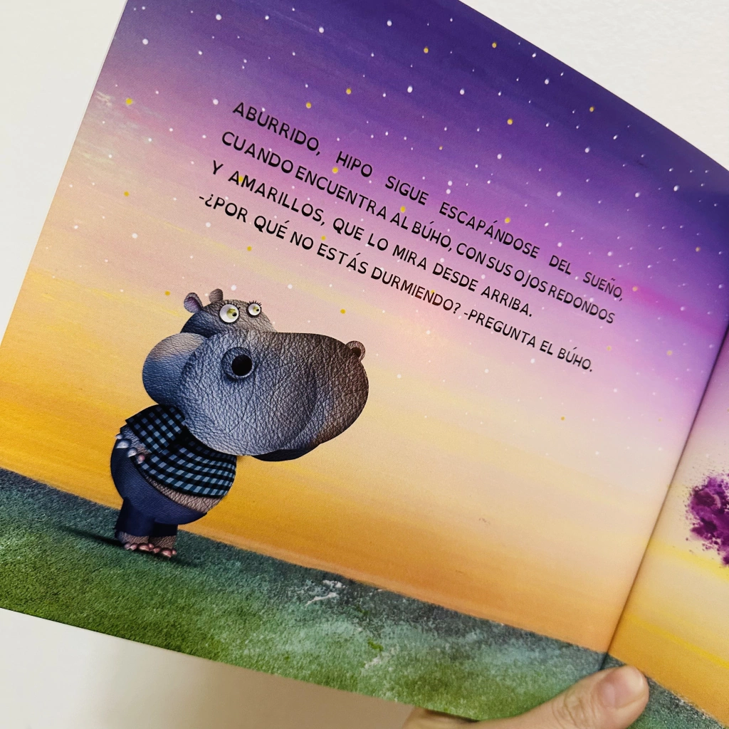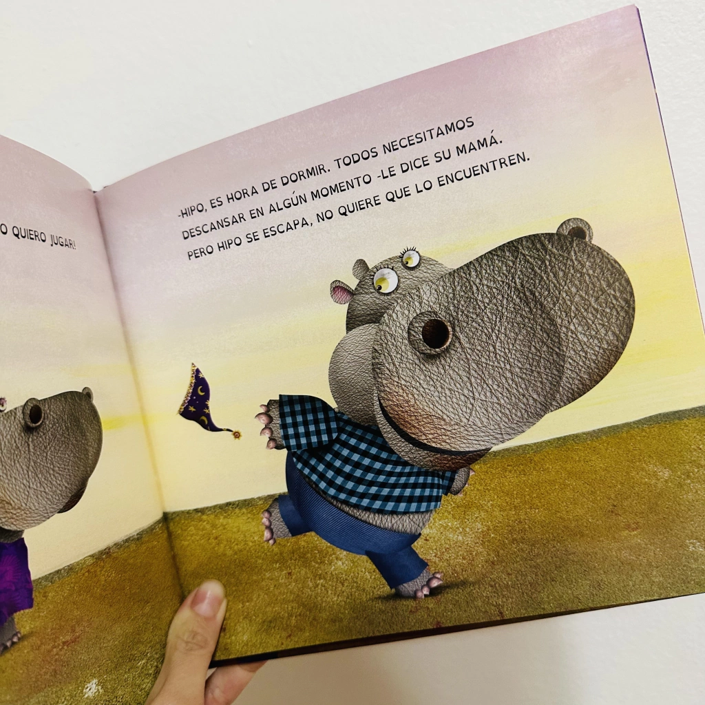 Hipo no quiere dormir. Le aburre. Cuando se hace de noche, se escapa para recorrer la laguna en busca de alguien que quiera jugar. Se encuentra con los flamencos rosados, las ranas, los pájaros enojones y las abejas malhumoradas. Pero todos prefieren dormir. Hipo está muy decepcionado. Aunque no todo está perdido…
