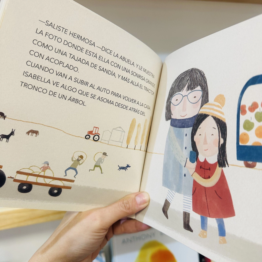 Isabella va a la chacra con su abuela para comprar frutas y verduras. Ven los animales, las plantaciones y también algo más. Ir a pasear con la abuela es siempre una aventura.