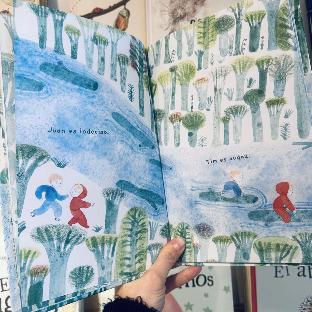 A través de bosques, mares y arcoíris, Juan y Tim exploran, se divierten y descubren el mundo juntos. Juan es tímido, Tim es audaz. Juan sabe construir barcos de papel, Tim quiere comandar grandes navíos. A Juan le gustan las historias de aventuras, Tim vive las historias que le cuenta Juan. A veces, Juan tiene miedo, pero Tim nunca deja que se quede atrás. Juntos, pueden lograr todo.