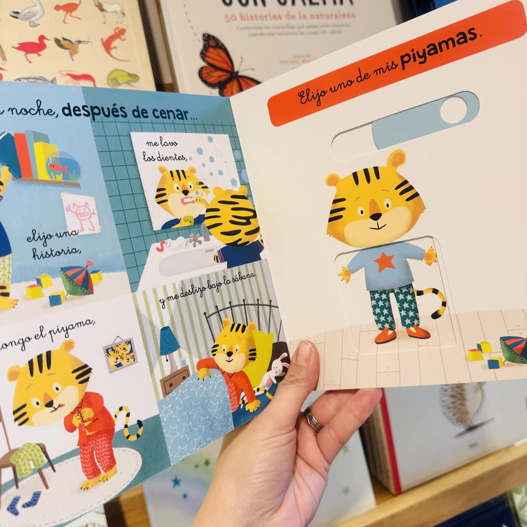 Descubre las diferentes etapas de la hora de ir a la cama gracias a mecanismos divertidos y fáciles de activar.