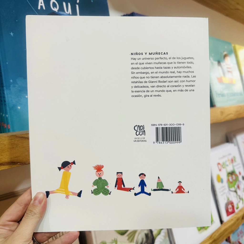 En el universo de los juguetes todo es perfecto y las muñecas tienen todo lo que necesitan y más: tenedores pequeños, cuencos diminutos, carritos y hasta otras muñecas más pequeñas que a su vez tienen todo... Pero en el mundo real hay niños que no tienen nada. Esta edición especial del poema Bambini e Bambole (Niños y muñecas) propone una nueva interpretación visual de una obra maestra del gran autor y pedagogo italiano.