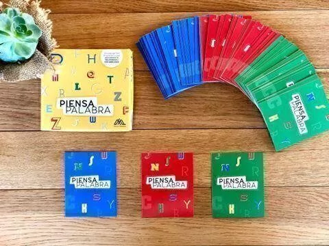 Los juegos de palabras y vocabularios son siempre una excelente opción a la hora de elegir un juego que reúna a la familia, que nos ayude a desarrollar una habilidad y que nos divierta al mismo tiempo. Piensa palabra es un juego que se juega en simultáneo y donde los participantes tienen que tratar decir antes que nadie una palabra que cumpla con las tres condiciones dadas.