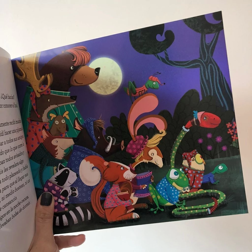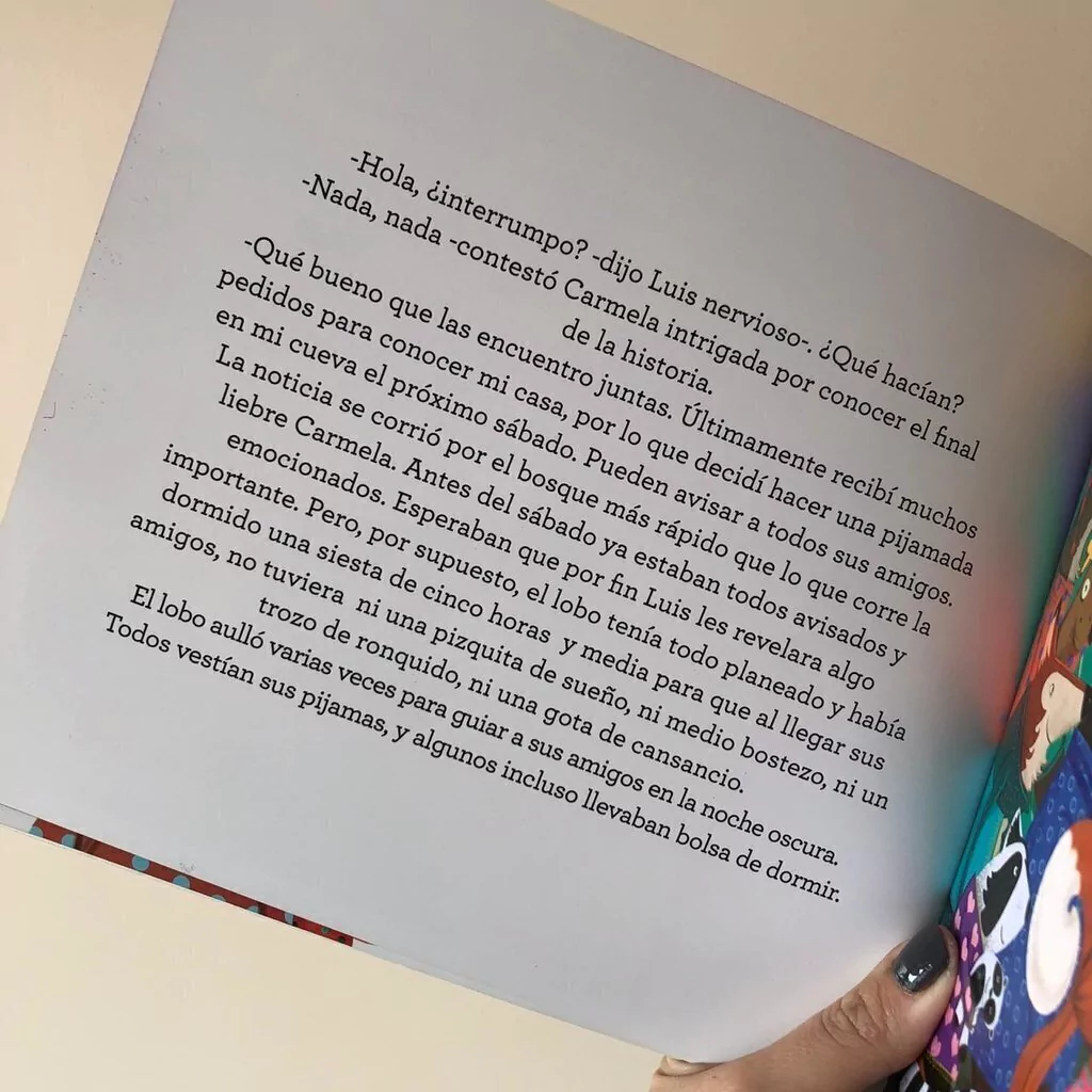 Esta es la historia de un lobo, un búho, una liebre, un sapo, una serpiente, una lagartija y un saltamontes que asistieron a la primera pijamada del bosque. Pero antes de que esta pijamada tuviera lugar ocurrieron muchas cosas: como una gran tormenta que hizo que el lobo gris invitara al señor búho a dormir a su guarida porque como a muchos de nosotros, no le gustaba dormir solo bajo el rezongo de los truenos. Y resulta que esa primera noche el lobo habló en sueños y el búho escuchó su secreto…
