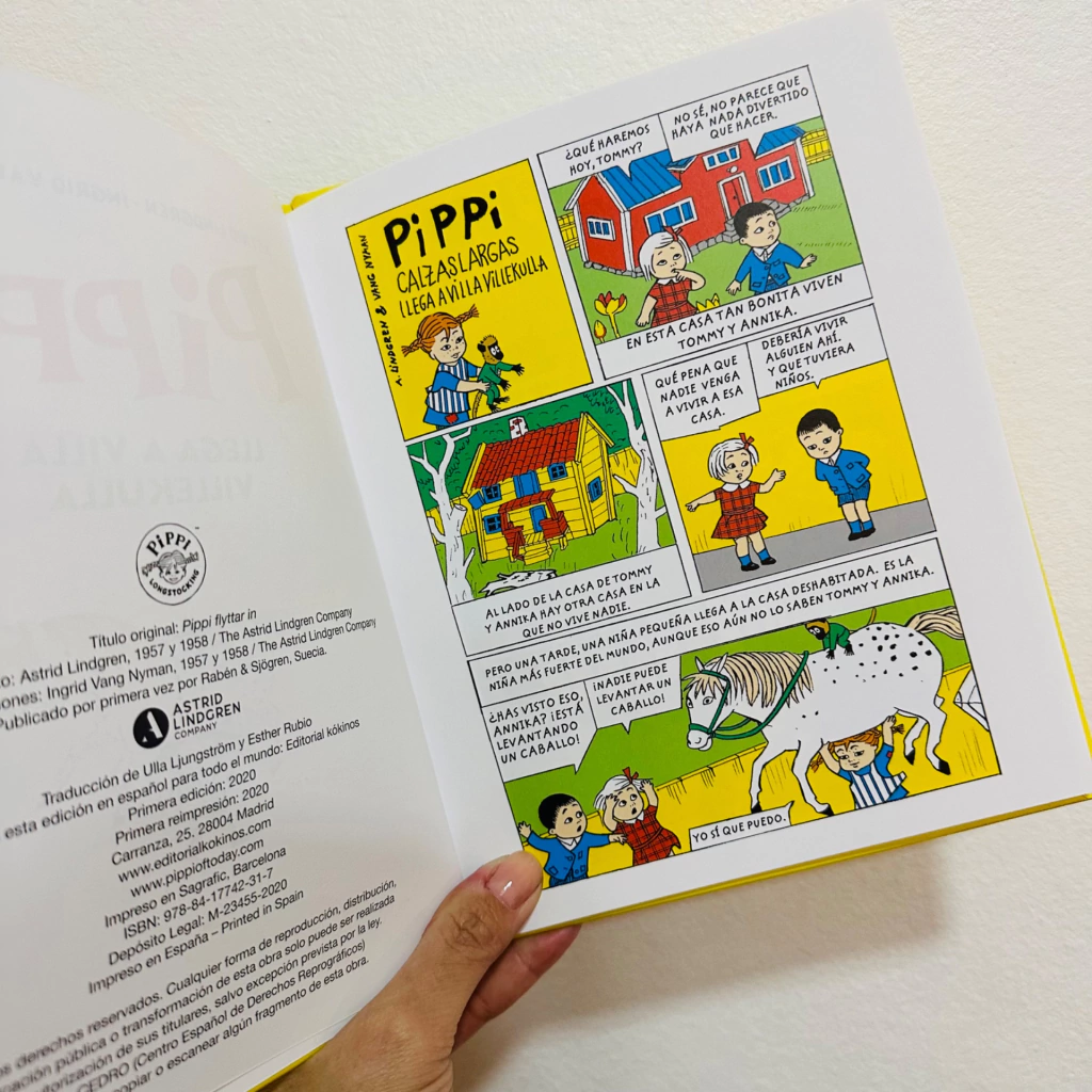 Este volumen, en formato cómic, es el primero de una colección que pretende acercar, a los primeros lectores, al extraordinario personaje de Pippi, la niña más fuerte del mundo.