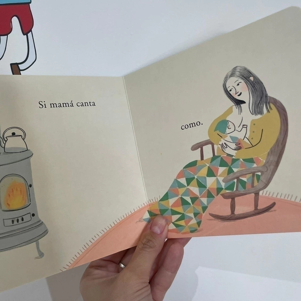 La voz de la madre es esa música constante que acompaña el crecimiento: todo cambia muy rápido para el bebé, pero la voz de su mamá está siempre ahí para alimentarlo, para abrazarlo, para darle confianza. Este libro es una nana que puede cantarse de día y de noche.