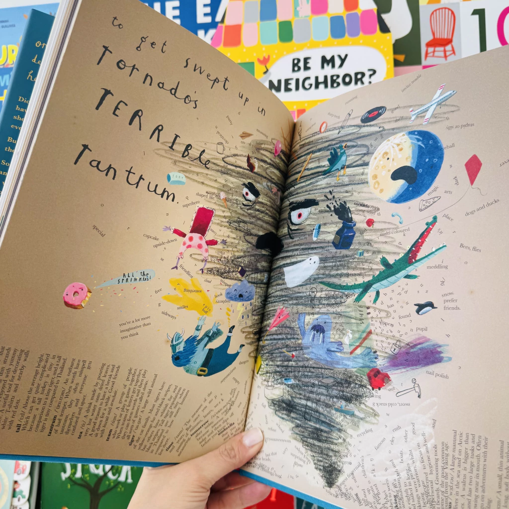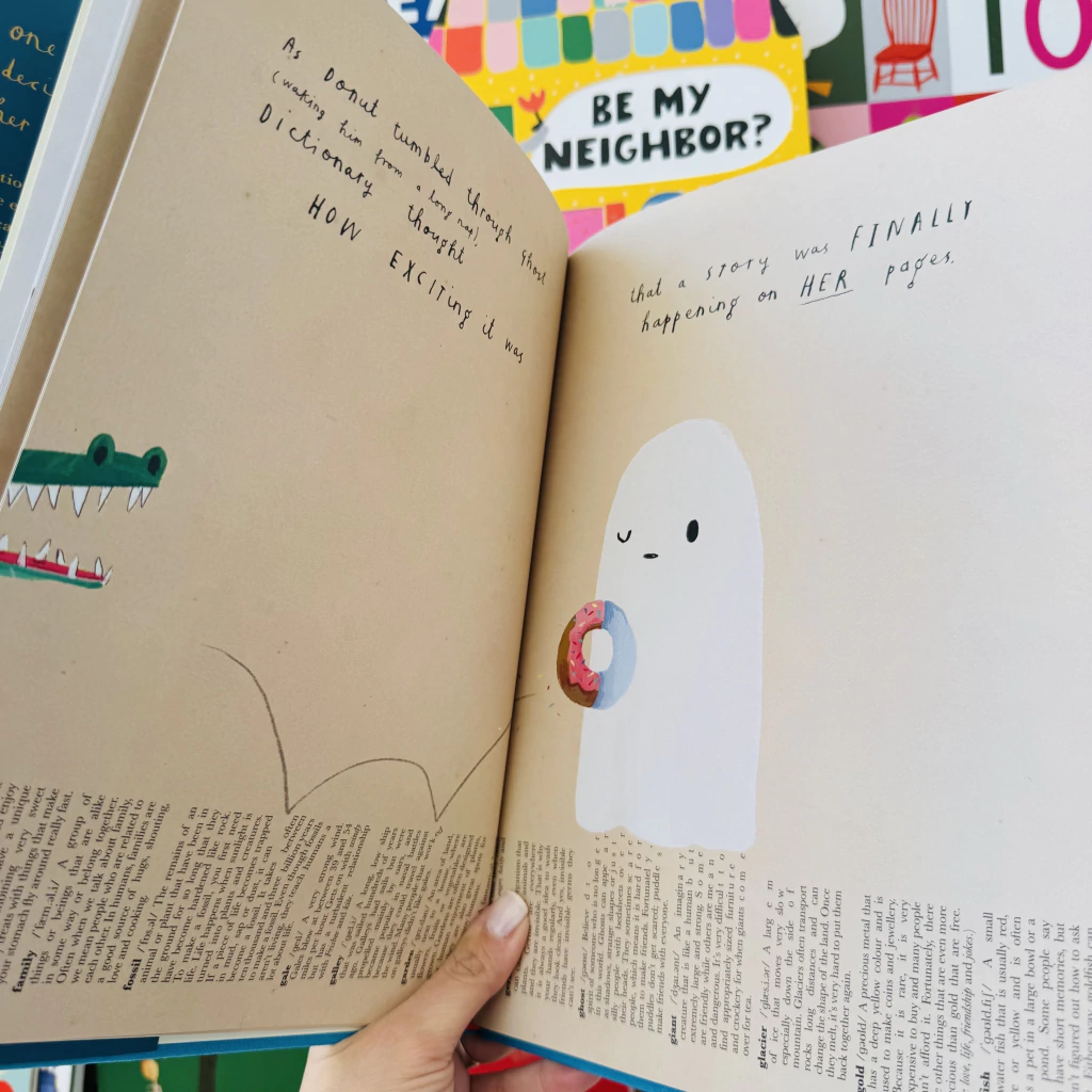 THE DICTIONARY STORY he much-anticipated new picture book from the bestselling and award-winning creators of A Child of Books. Dictionary wishes she could tell a story just like the other books. So one day she decides to bring her words to life. How exciting it is, she thinks, that an adventure is finally happening on her very own pages! But what will she do when everything gets out of control, all in a jumble, and her characters collide causing the most enormous tantrum to explode. This isn't what she wanted at all! How on earth will she find sense in all this chaos? Her friend Alphabet knows exactly what to do and sings a song that brings calm and order to Dictionary's pages once again.