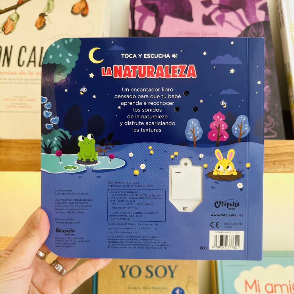Este nuevo título de la colección Toca y escucha presenta los sonidos de la naturaleza. ¿Cuáles son los sonidos de la noche? ¿Cómo es el ruido del mar? ¿Cómo se escucha el susurro del viento? El bebé va a reconocer estos sonidos y disfrutará acariciando las texturas de sus páginas.